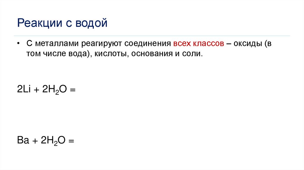 Реакции с водой• С металлами реагируют соединения всех классов – оксиды (в