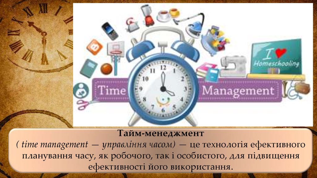 Тайм-менеджмент( tіте тапаgетепt — управління часом) — це технологія ефективного