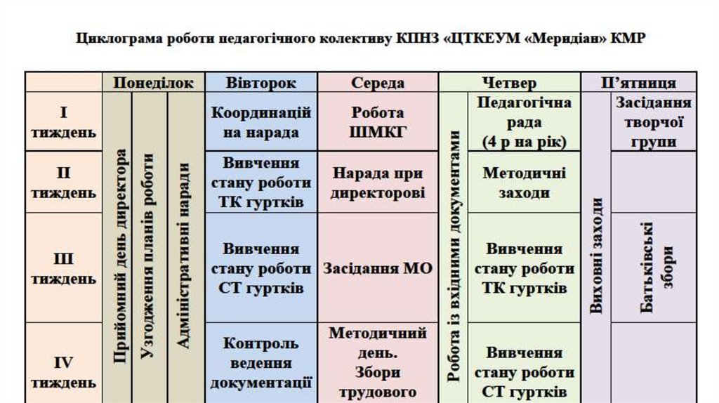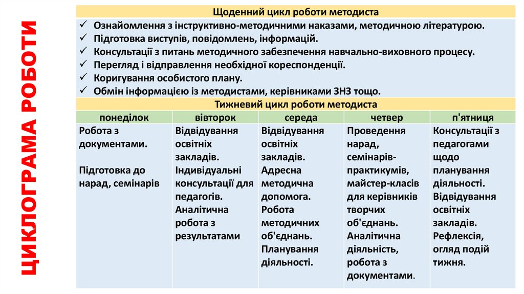 ЦИКЛОГРАМА РОБОТИЩоденний цикл роботи методиста