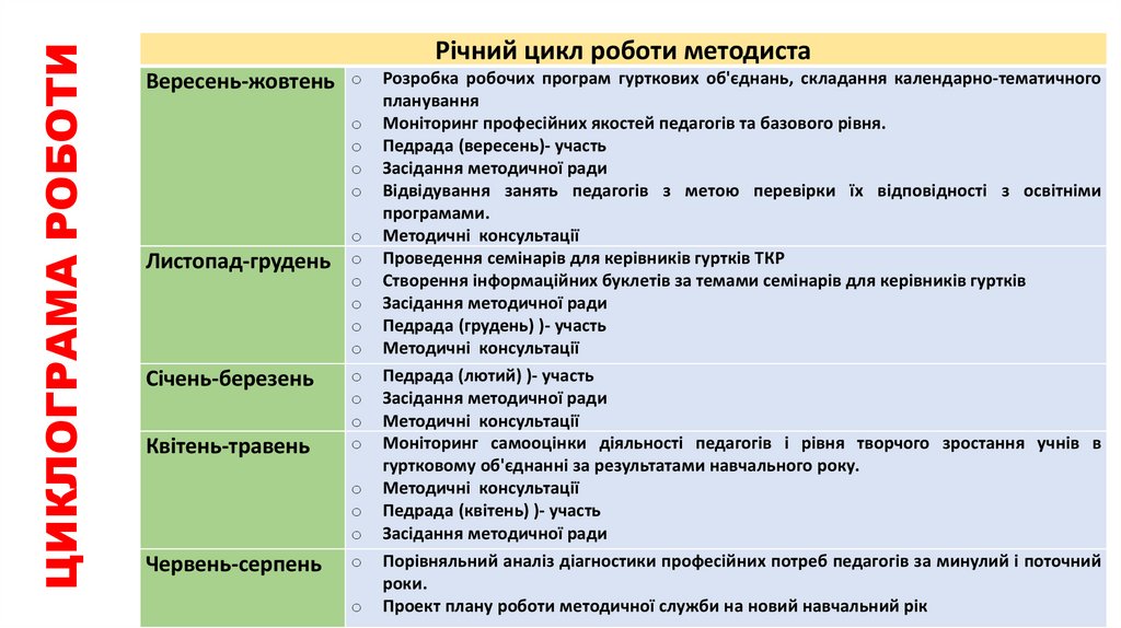 ЦИКЛОГРАМА РОБОТИРічний цикл роботи методиста