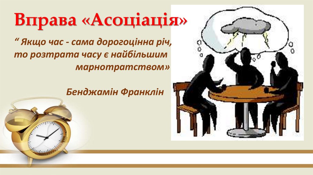 Вправа «Асоціація»“ Якщо час - сама дорогоцінна річ,