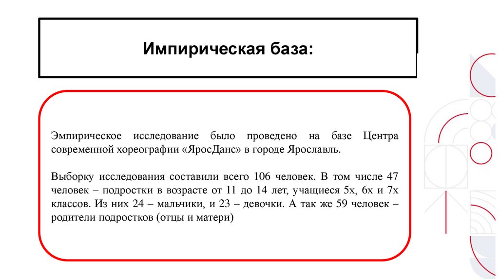 Импирическая база:Эмпирическое исследование было проведено на базе
