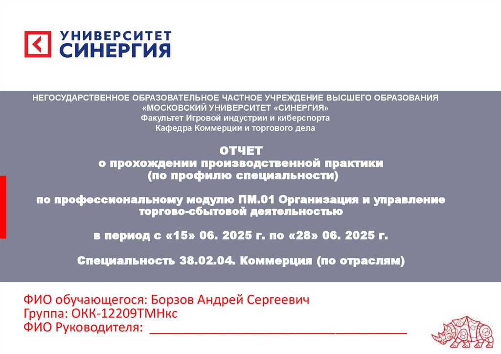 1. ОТЧЕТ о прохождении производственной практики (по профилю специальности) по профессиональному модулю ПМ.01 Организация и