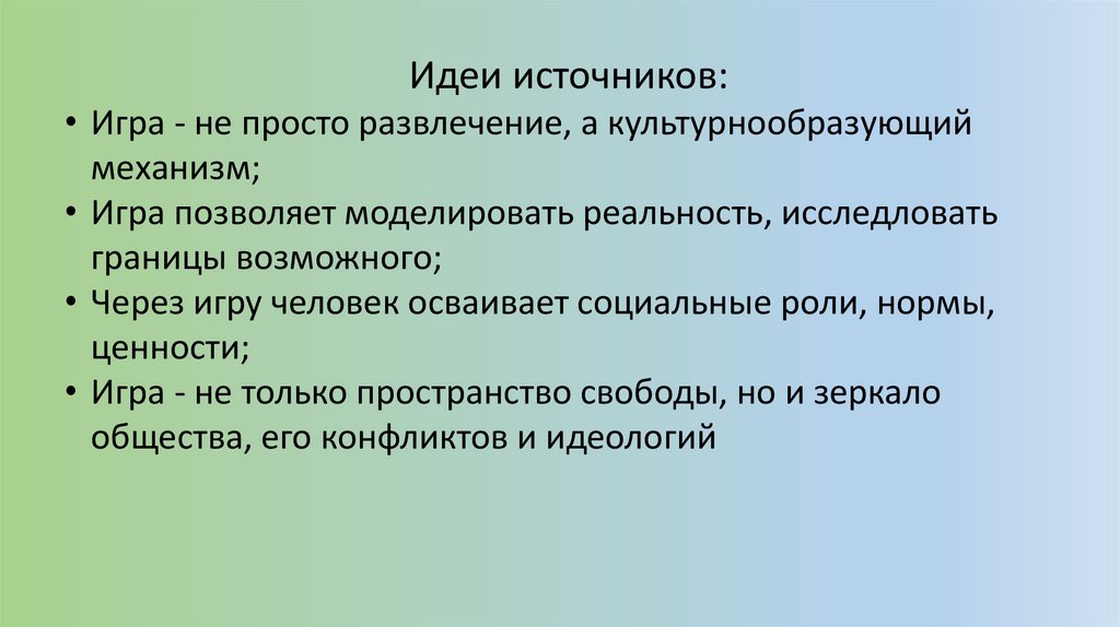 Идеи источников:• Игра - не просто развлечение, а культурнообразующий