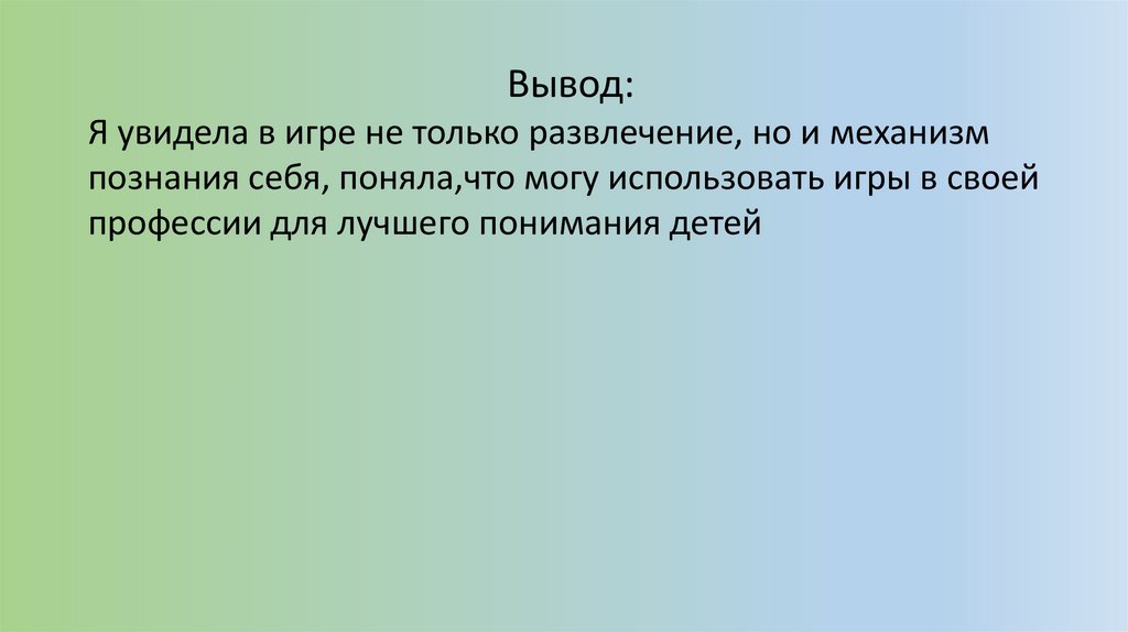 Вывод:Я увидела в игре не только развлечение, но и механизм