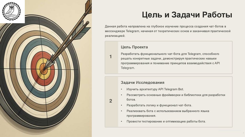 Цель и Задачи РаботыДанная работа направлена на глубокое изучение процесса создания чат-ботов в