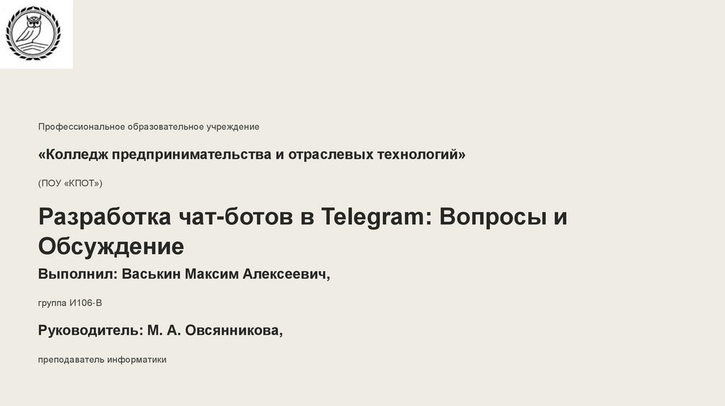 мессенджере Telegram, начиная от теоретических основ и заканчивая практической