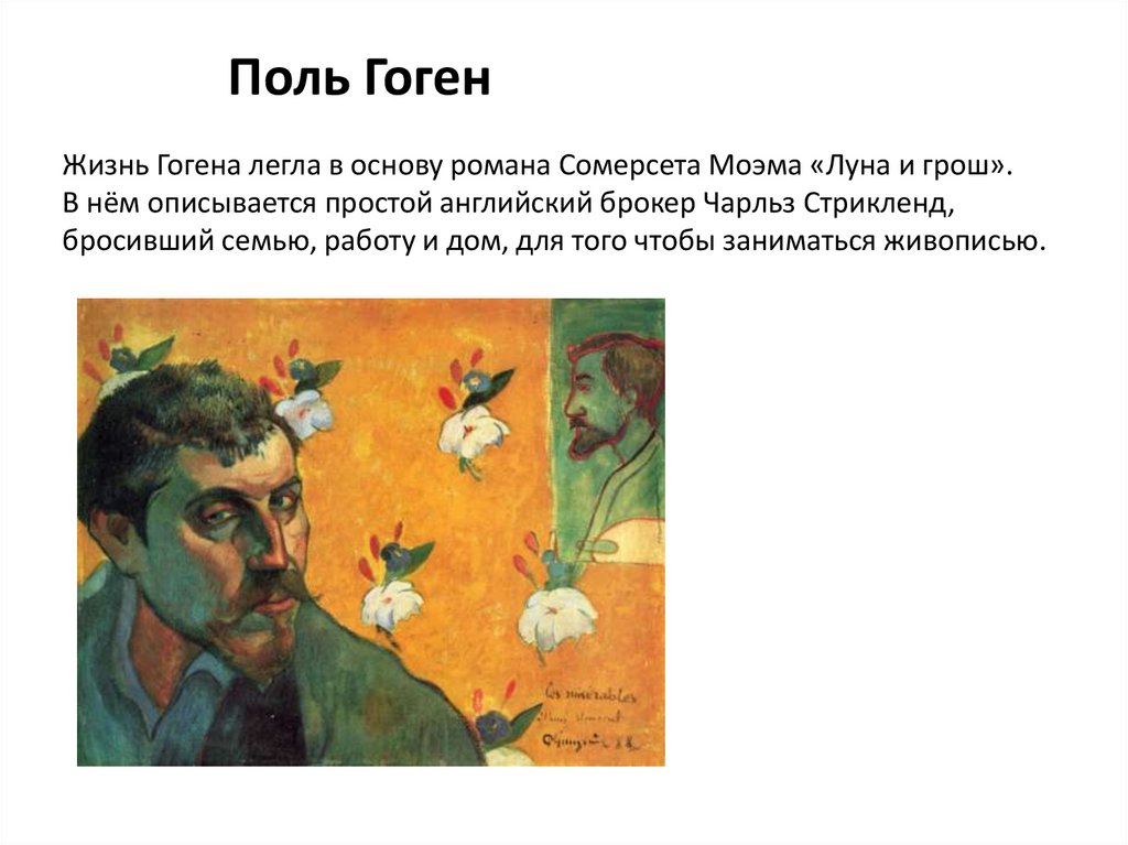 Поль ГогенЖизнь Гогена легла в основу романа Сомерсета Моэма «Луна и грош».
