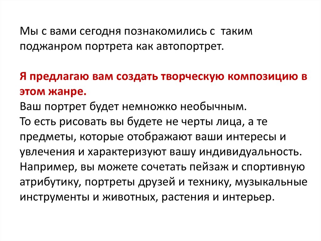 Мы с вами сегодня познакомились с такимподжанром портрета как автопортрет.