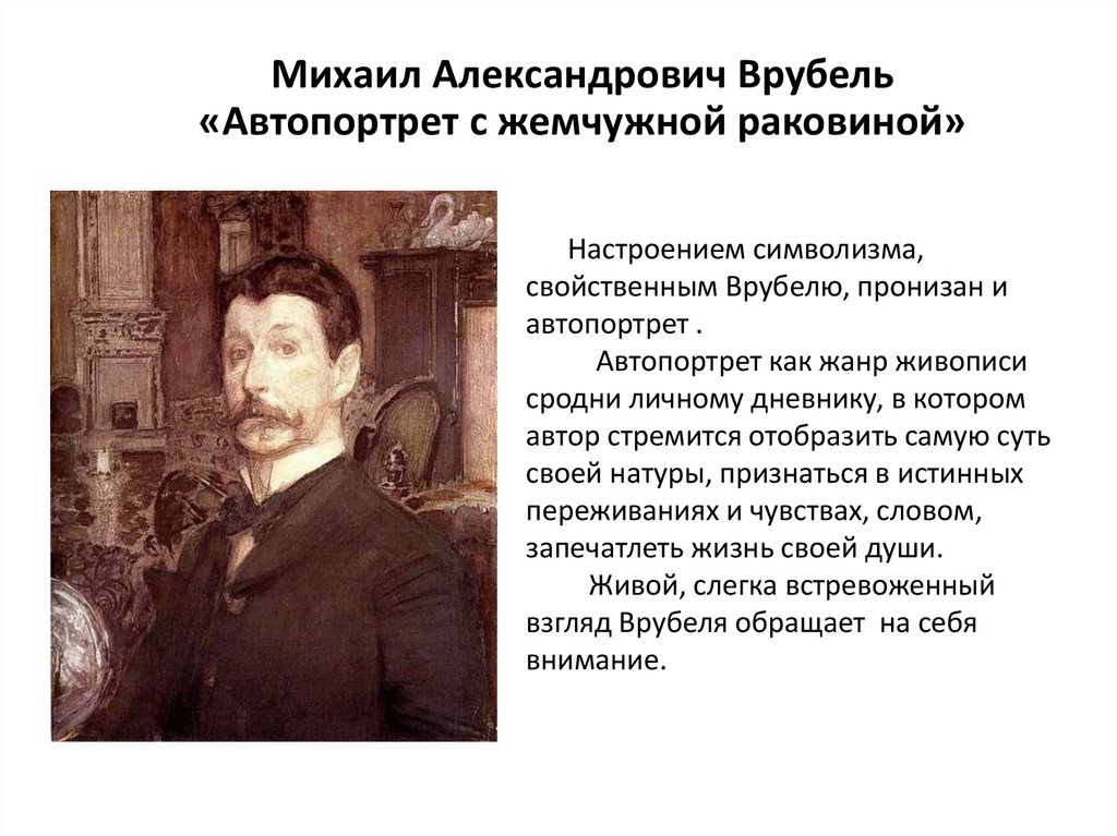 Михаил Александрович Врубель«Автопортрет с жемчужной раковиной»
