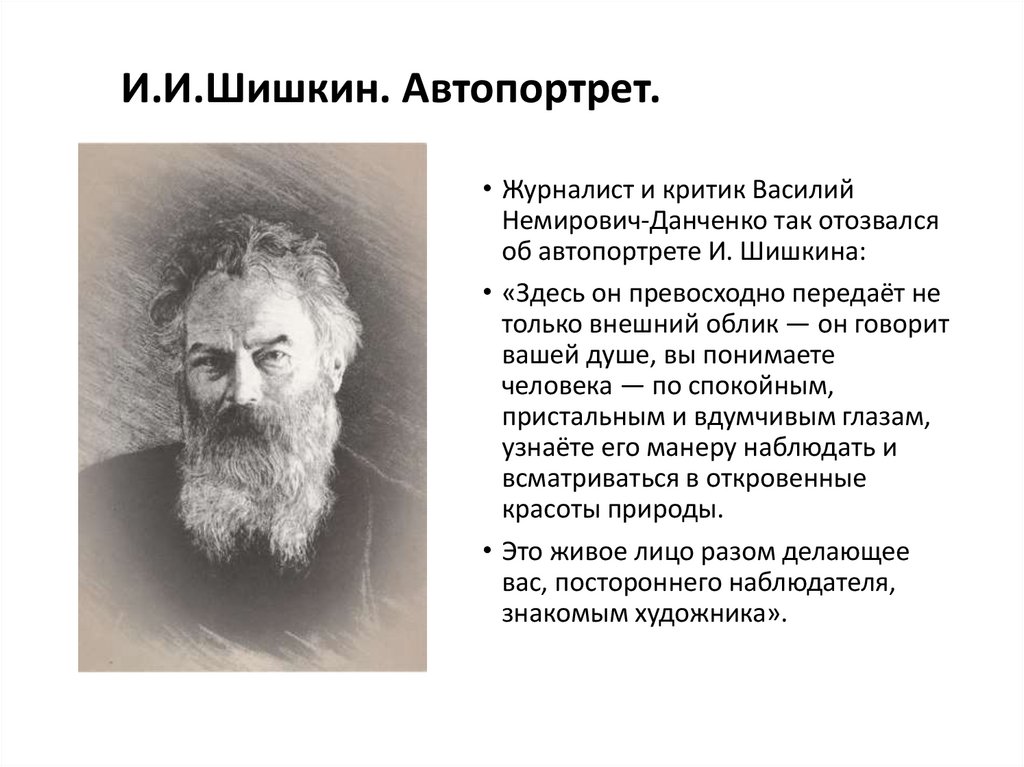 И.И.Шишкин. Автопортрет.• Журналист и критик Василий