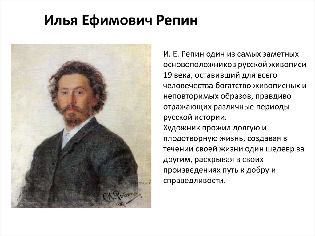 Илья Ефимович РепинИ. Е. Репин один из самых заметных