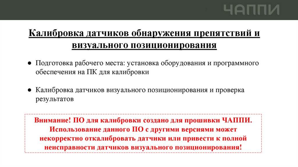 Внимание! ПО для калибровки создано для прошивки ЧАППИ.