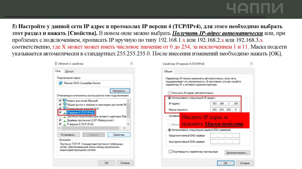 указывается автоматически в стандартных 255.255.255.0. После внесения изменений необходимо нажать [OK].