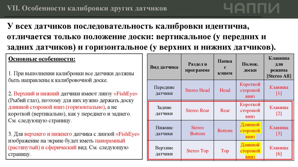 ● Калибровка верхнего (Top) и нижнего (Bottom) датчиковс линзой «FishEye»: