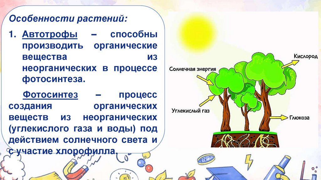 Особенности растений:1. Автотрофы – способны