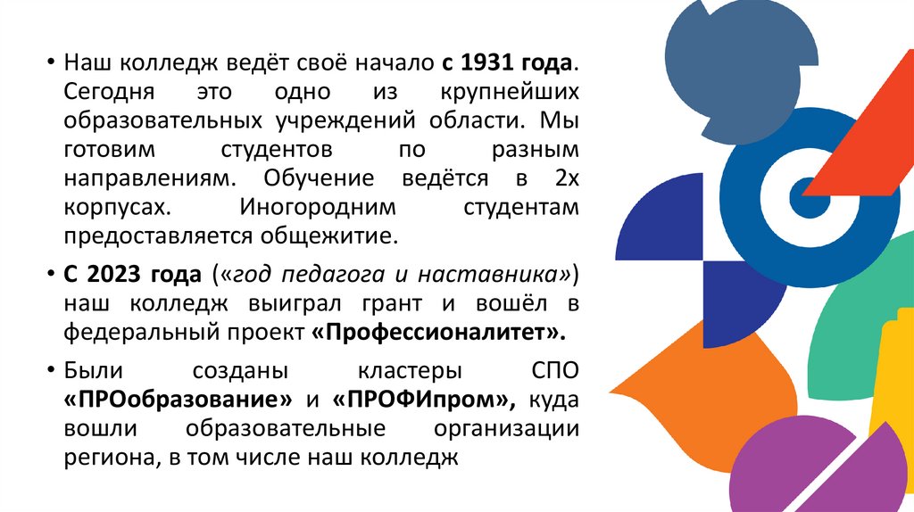 • Наш колледж ведёт своё начало с 1931 года.Сегодня
