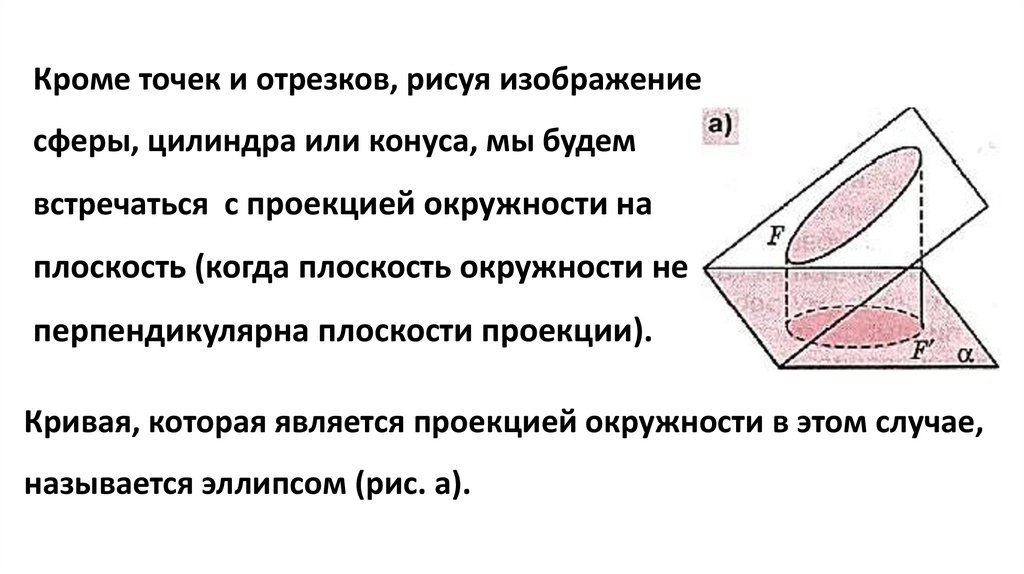 Кроме точек и отрезков, рисуя изображениесферы, цилиндра или конуса, мы будем