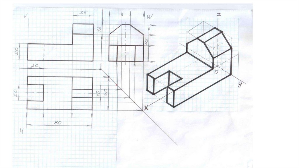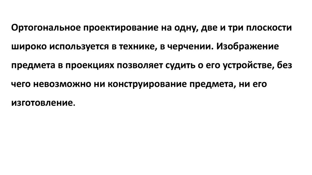 Ортогональное проектирование на одну, две и три плоскостишироко используется в технике, в черчении. Изображение