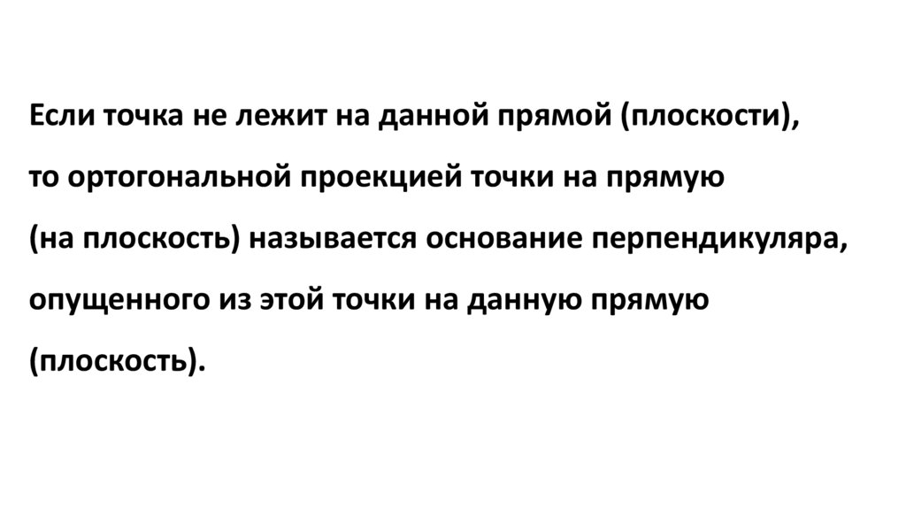 Если точка не лежит на данной прямой (плоскости),то ортогональной проекцией точки на прямую