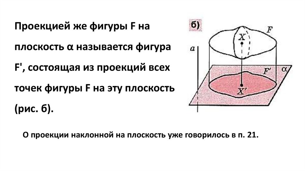 Проекцией же фигуры F наплоскость α называется фигура