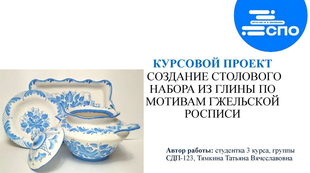1. КУРСОВОЙ ПРОЕКТ СОЗДАНИЕ СТОЛОВОГО НАБОРА ИЗ ГЛИНЫ ПО МОТИВАМ ГЖЕЛЬСКОЙ РОСПИСИ