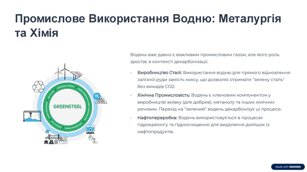 речовин. Перехід на "зелений" водень декарбонізує ці процеси.