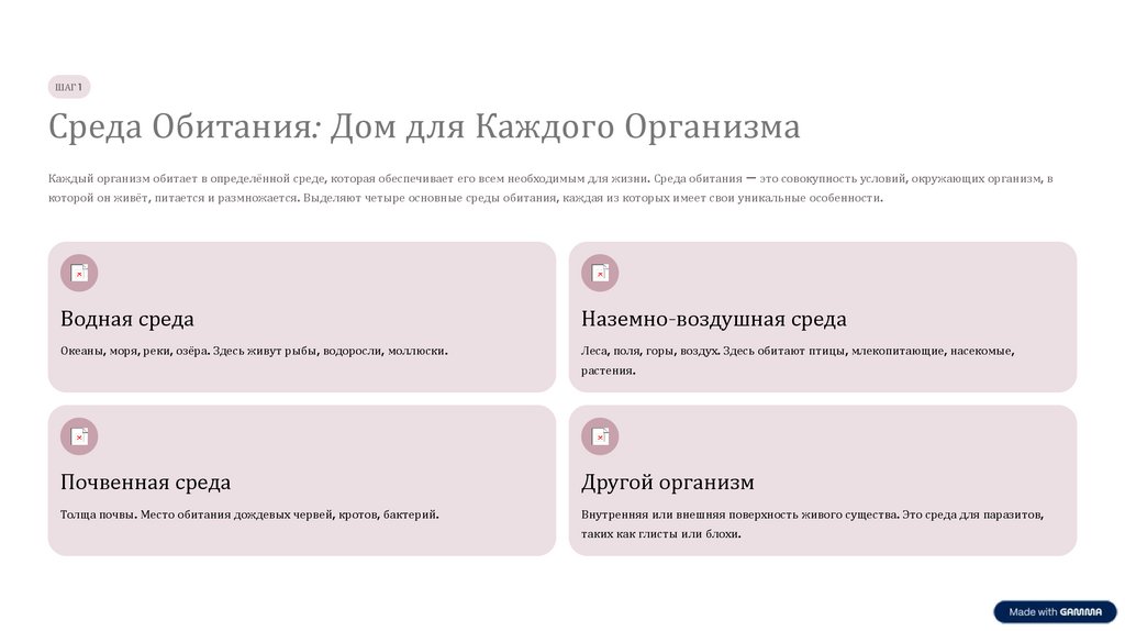 ШАГ 1Среда Обитания: Дом для Каждого Организма