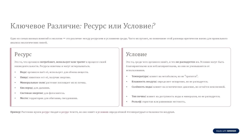 Ключевое Различие: Ресурс или Условие?Одно из самых важных понятий в экологии — это различие между ресурсами и условиями среды. Часто их путают, но понимание этой разницы критически важно для правильного