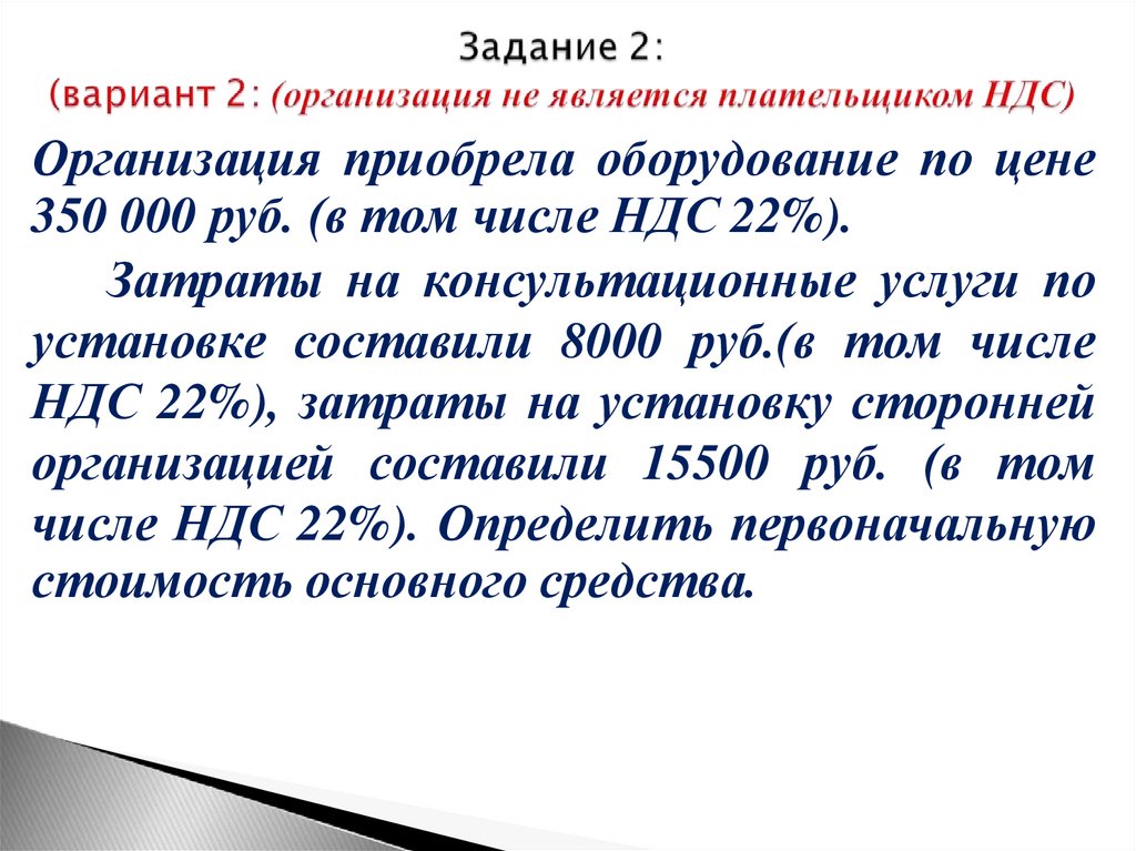 числе НДС 22%). Определить первоначальную