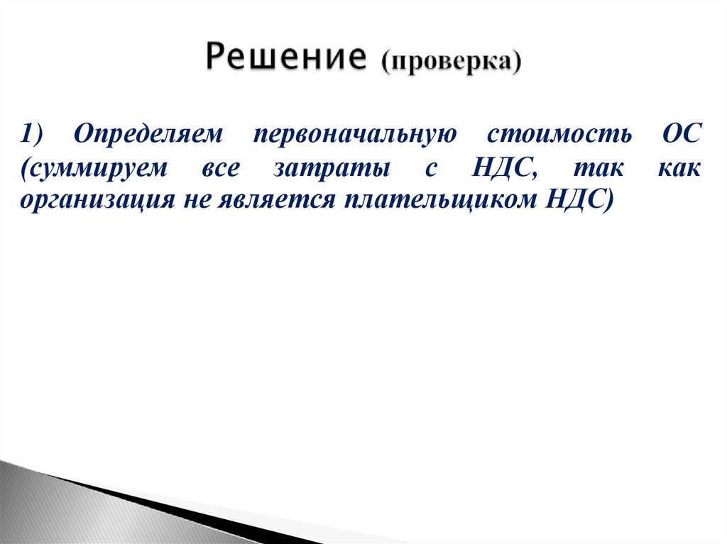 1) Определяем сумму НДС при покупке ОС2) Определяем стоимость покупки ОС без