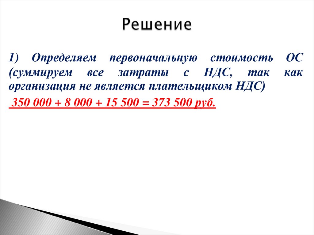 1) Определяем первоначальную стоимость ОС(суммируем все затраты с НДС, так как
