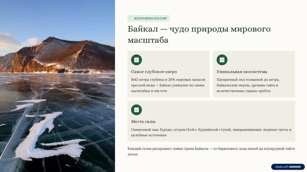 ЖЕМЧУЖИНА РОССИИБайкал — чудо природы мирового