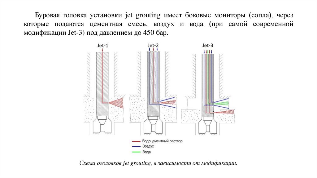 Схема оголовков jet grouting, в зависимости от модификации.