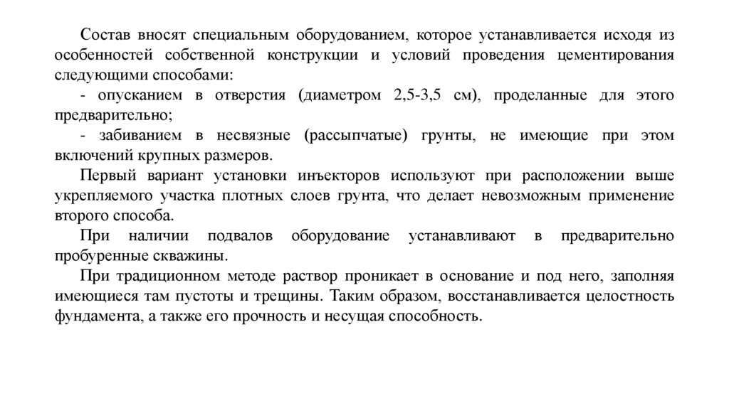 • Цементация;• Струйная цементация;
