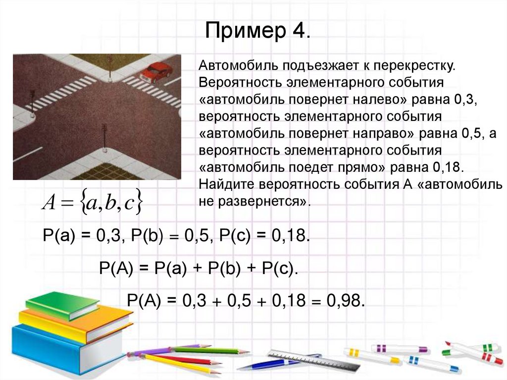 «автомобиль повернет направо» равна 0,5, а
