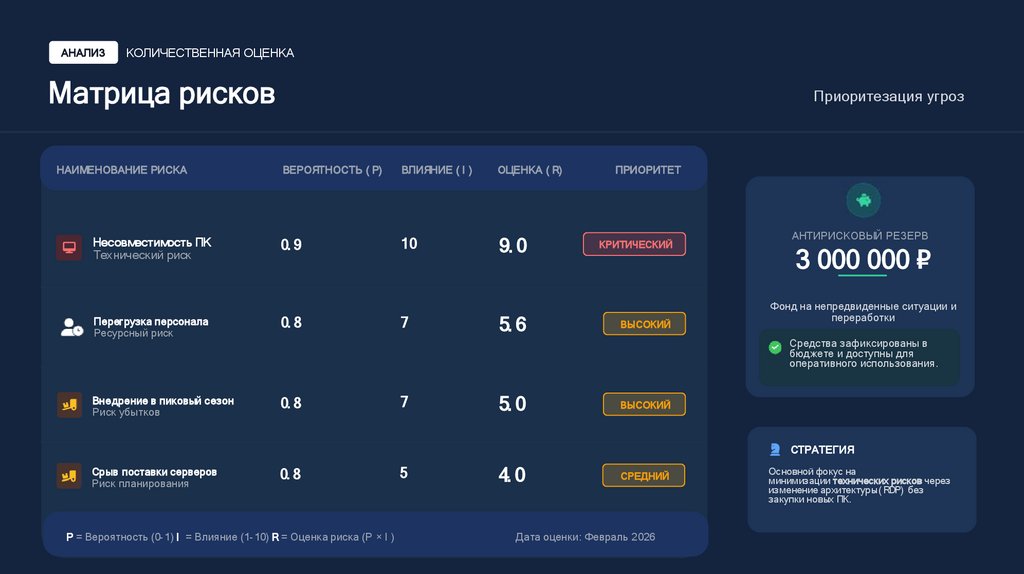 Учтены критические риски и заложены резервы (3 млн ₽).