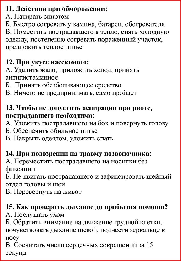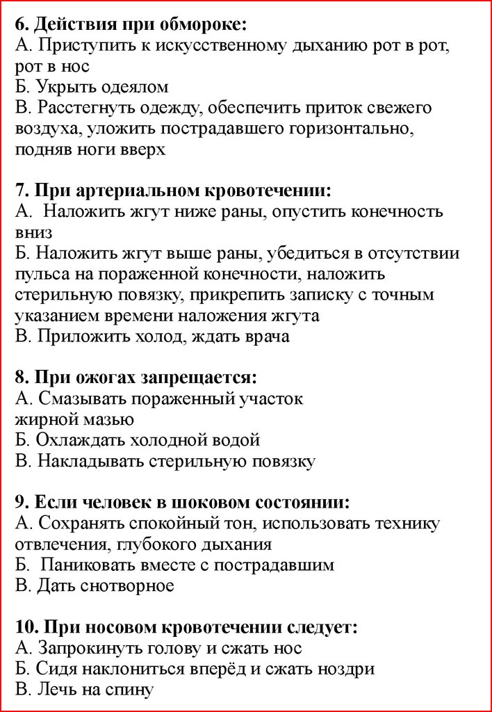 6. Действия при обмороке:А. Приступить к искусственному дыханию рот в рот,