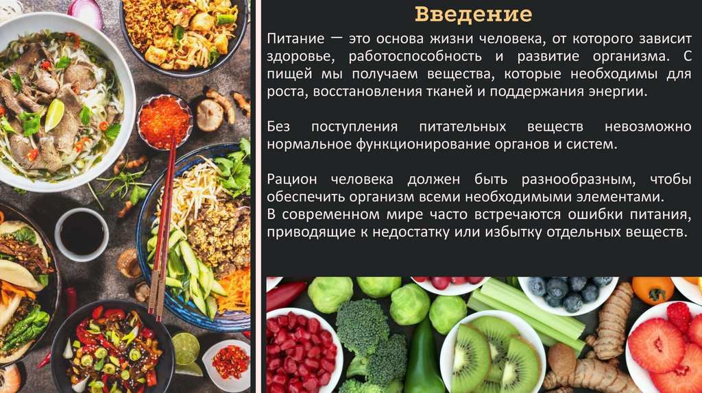 ВведениеПитание — это основа жизни человека, от которого зависит