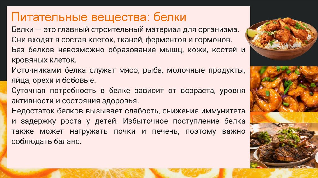 Питательные вещества: белкиБелки — это главный строительный материал для организма.