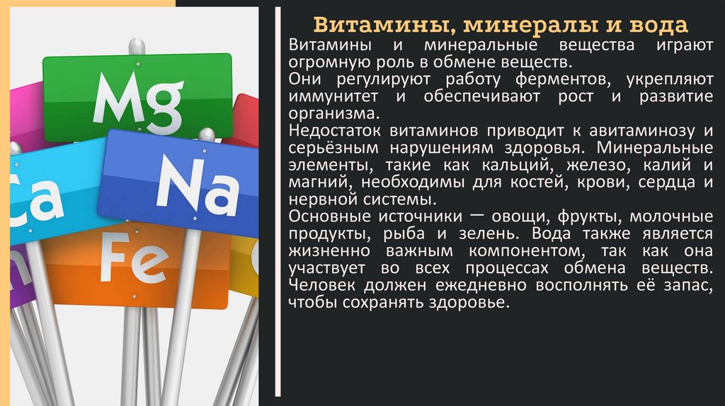 Витамины, минералы и водаВитамины и минеральные вещества играют