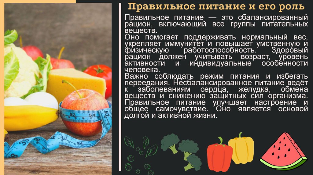 Правильное питание и его рольПравильное питание — это сбалансированный