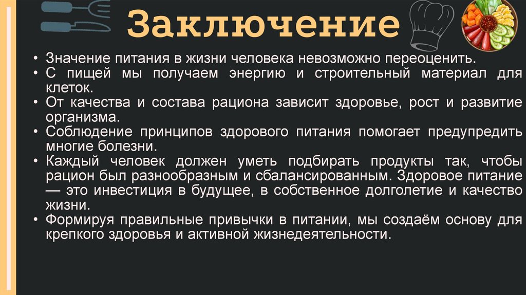 Заключение• Значение питания в жизни человека невозможно переоценить.