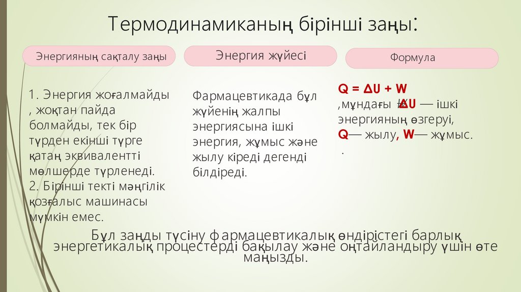 Термодинамиканың бірінші заңының өндіріс технологиясымен байланысыЖылу балансын ескере отырып, өндірістік