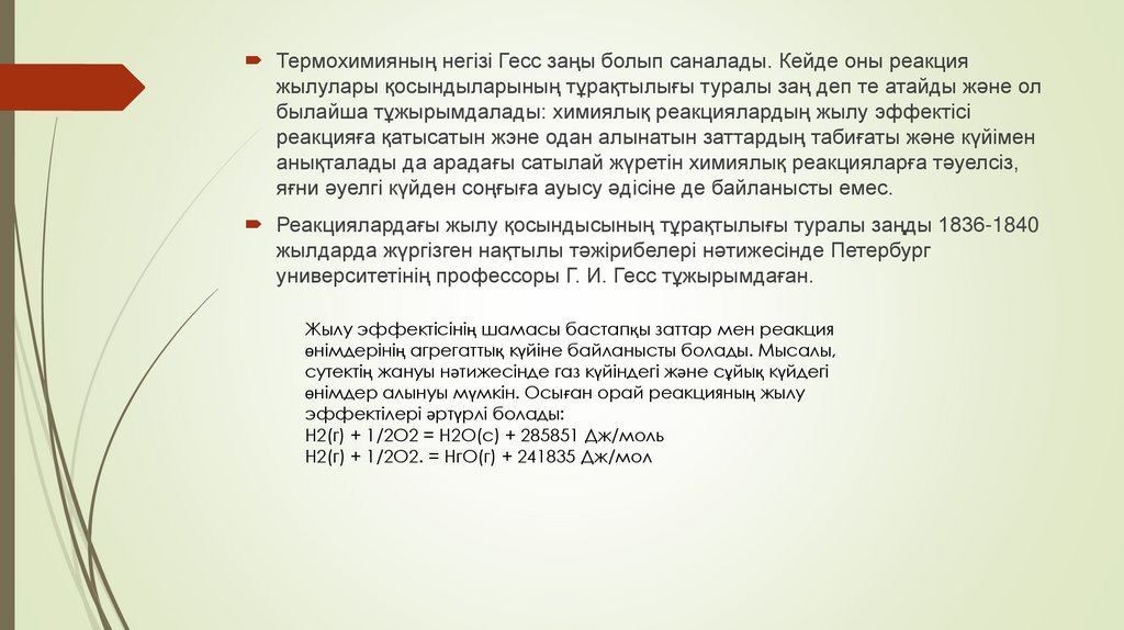 Гесс заңы және оның нәтижелері ғылымидиетологияда қолданылады. Оның көмегімен тағам