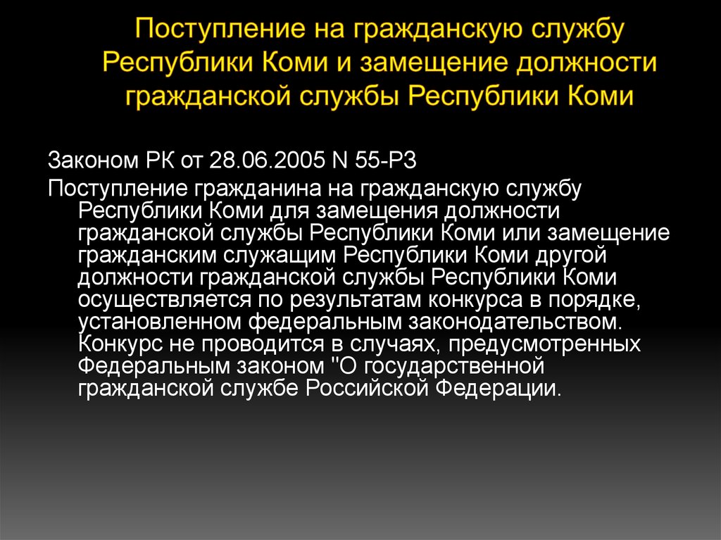 Законом РК от 28.06.2005 N 55-РЗПоступление гражданина на гражданскую службу