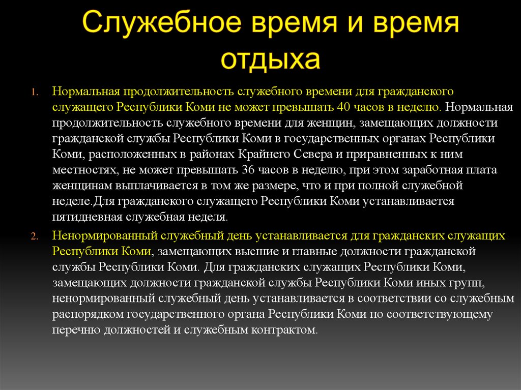 служащего Республики Коми не может превышать 40 часов в неделю. Нормальная