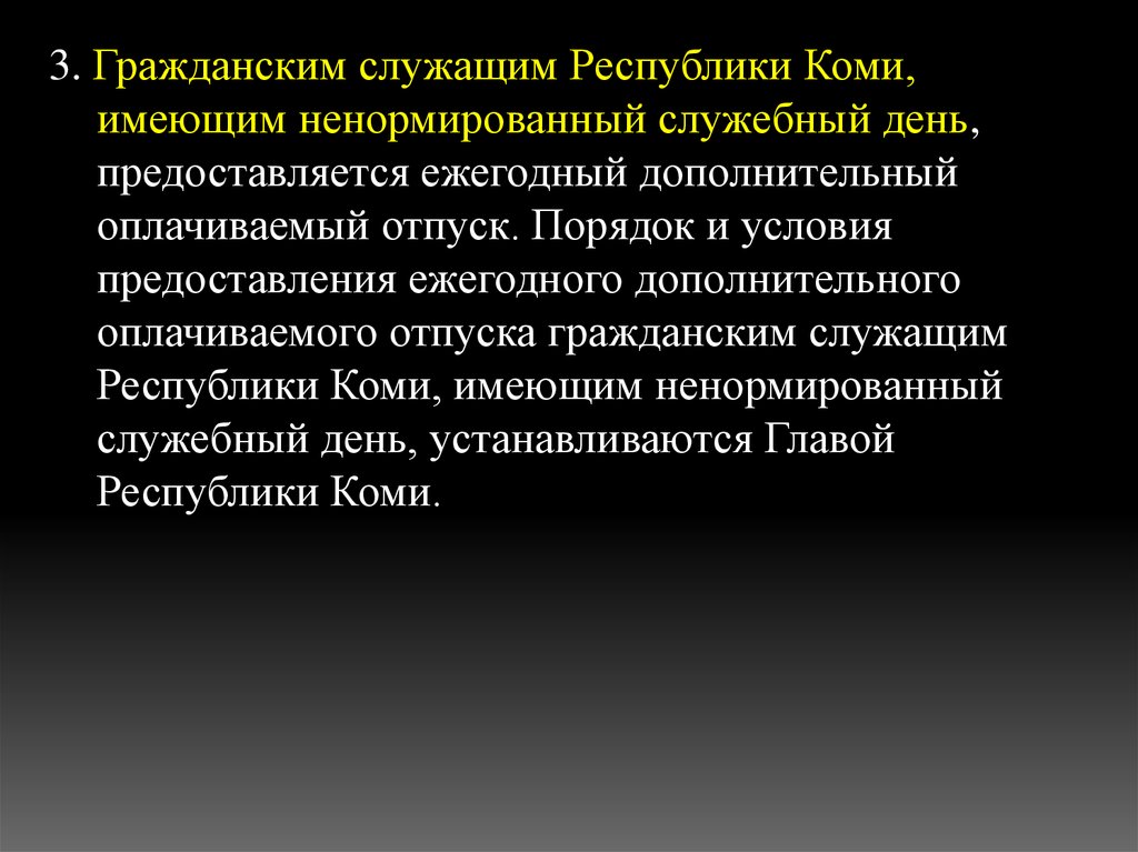 3. Гражданским служащим Республики Коми,имеющим ненормированный служебный день,
