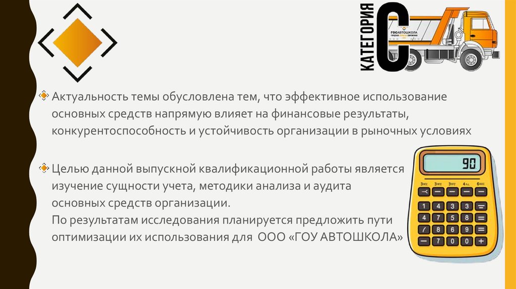 • Актуальность темы обусловлена тем, что эффективное использованиеосновных средств напрямую влияет на финансовые результаты,