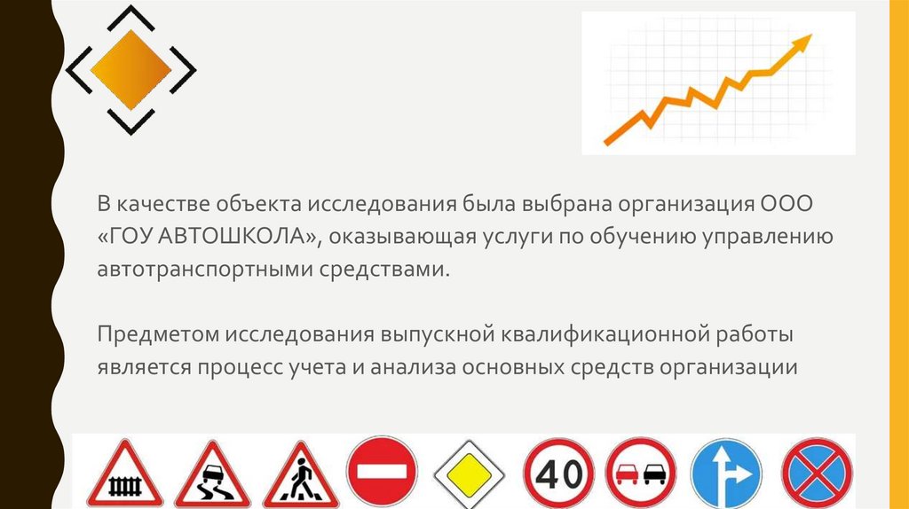В качестве объекта исследования была выбрана организация ООО«ГОУ АВТОШКОЛА», оказывающая услуги по обучению управлению